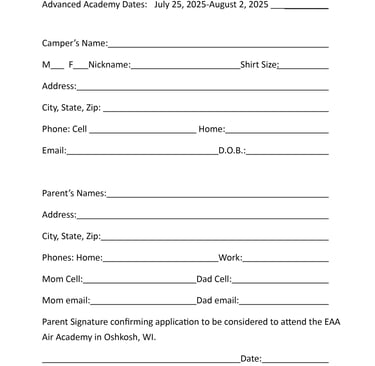 To be considered for the EAA Air Academy scholarship, DO NOT send this paperwork to Oshkosh, WI.