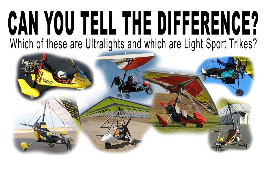 These are trikes or more technically, Flex Wing. There basically two types of trikes. Ultralight and Sport Pilot. There are two differences. Ultralights are limited to one seat, 254lbs and have speed restrictions. Often the wing can be used on either. So the easiest way to tell the difference is to count the seats. Sometimes the engine will be bigger than need be on an ultralight but just count the seats. One is probably an ultralight and two will be something else. Hope that helps.